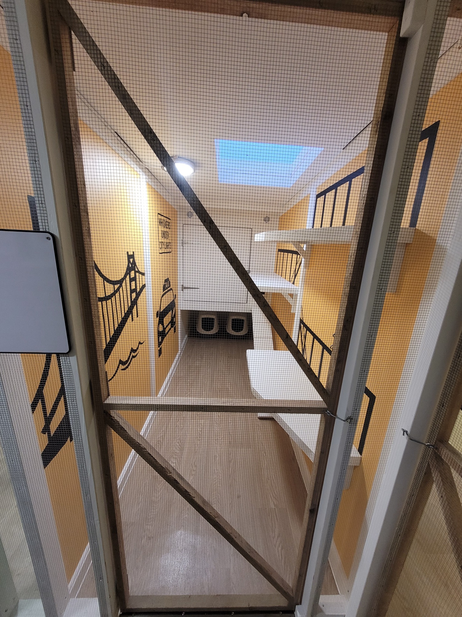 Explore City Whiskers Den, our vibrant orange pen inspired by Oliver and Company. Comfortable for two cats from the same household, it includes a penthouse-style sleeping area, ramp, cat flap, and three levels of climbing shelves for endless entertainment.