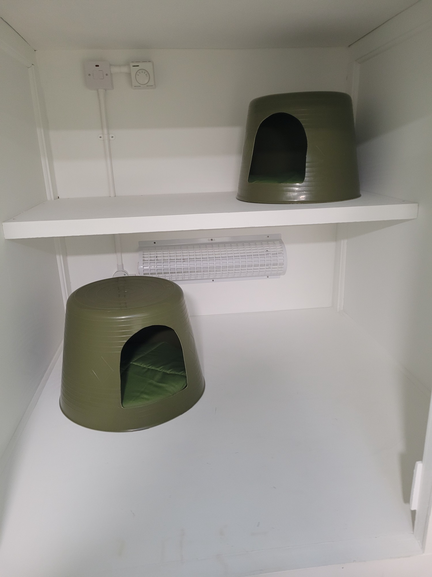 Welcome to Jungle Paws Retreat, a lively green pen inspired by The Jungle Book. Spacious enough for two cats from the same household, it features a penthouse-style sleeping area, ramp, cat flap, and three levels of climbing shelves for active play.