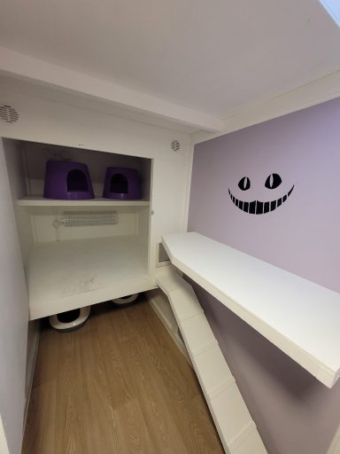 Welcome to Cheshire Dreams Garden, our whimsical purple pen inspired by Alice in Wonderland. Designed to comfortably house two cats from the same household, it features a penthouse-style sleeping area accessed by a ramp and cat flap, along with three levels of climbing shelves for plenty of fun and exercise.